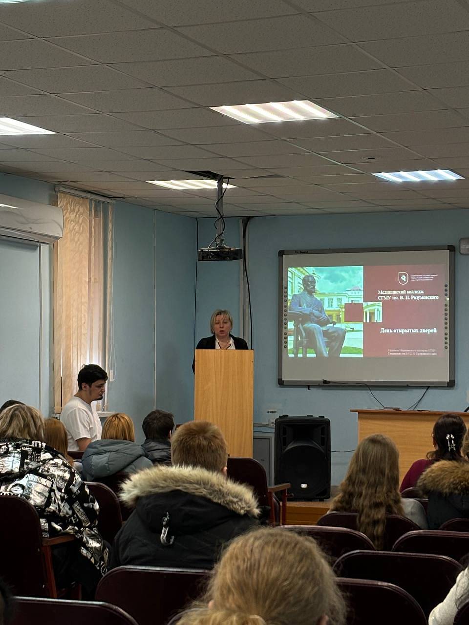 Ответственный секретарь ПК Медицинского колледжа СГМУ им. В.И. Разумовского О.А. Алиева, показала фильм о колледже, рассказала об условиях обучения и особенностях профессиональной подготовки по данным специальностям, представила информацию о правилах приема.