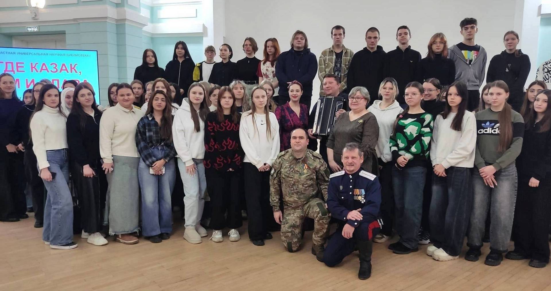 Мероприятие «Где казак, там и слава» завершилось общей фотографией студентов с гостями встречи.
