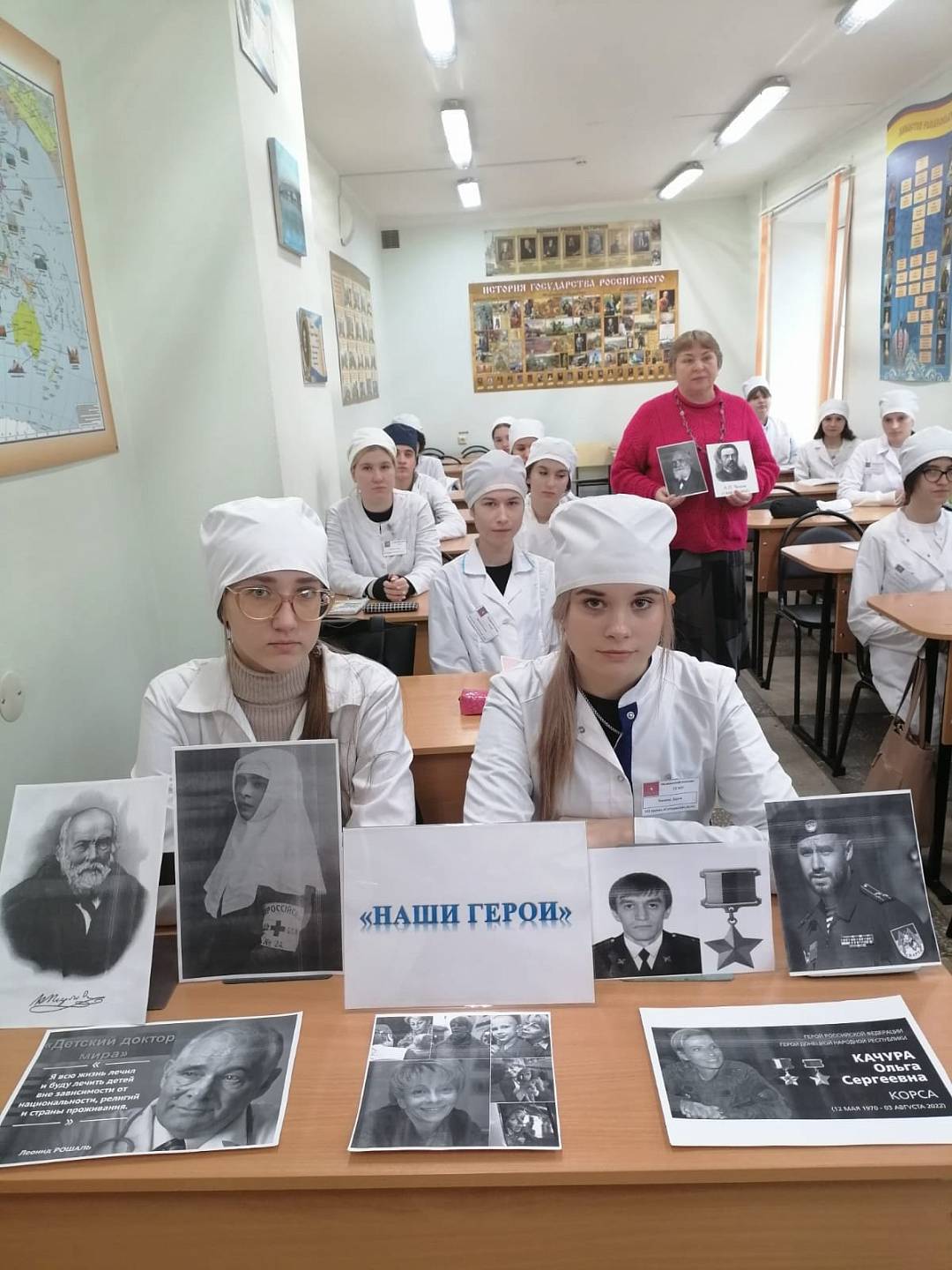 посвящен гражданско-патриотический час «Наши Герои», где рассказывалось о выдающихся российских государственных деятелях, деятелях культуры и спорта, их кратких биографиях и подвигах. Студентам