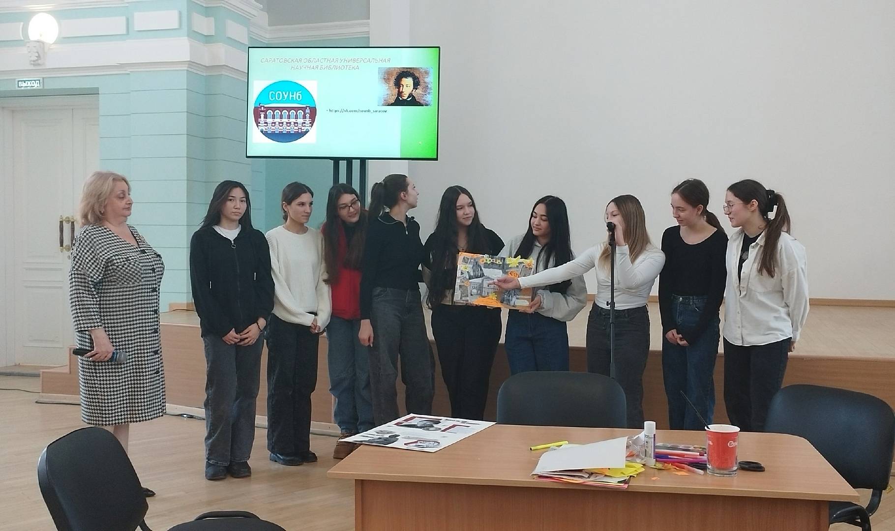 мероприятии, посвященном Дню памяти А.С. Пушкина. В Областной универсальной научной библиотеке по Пушкинской карте прошла литературная гостиная «Я к вам лечу воспоминаньем», на которой студенты отдали дань уважения таланту гения русской словесности. Студенты узнали интересные факты из жизни поэта, о годах учебы, о личной жизни поэта, о судьбах четырех детей Александра Сергеевича Пушкина. В формате