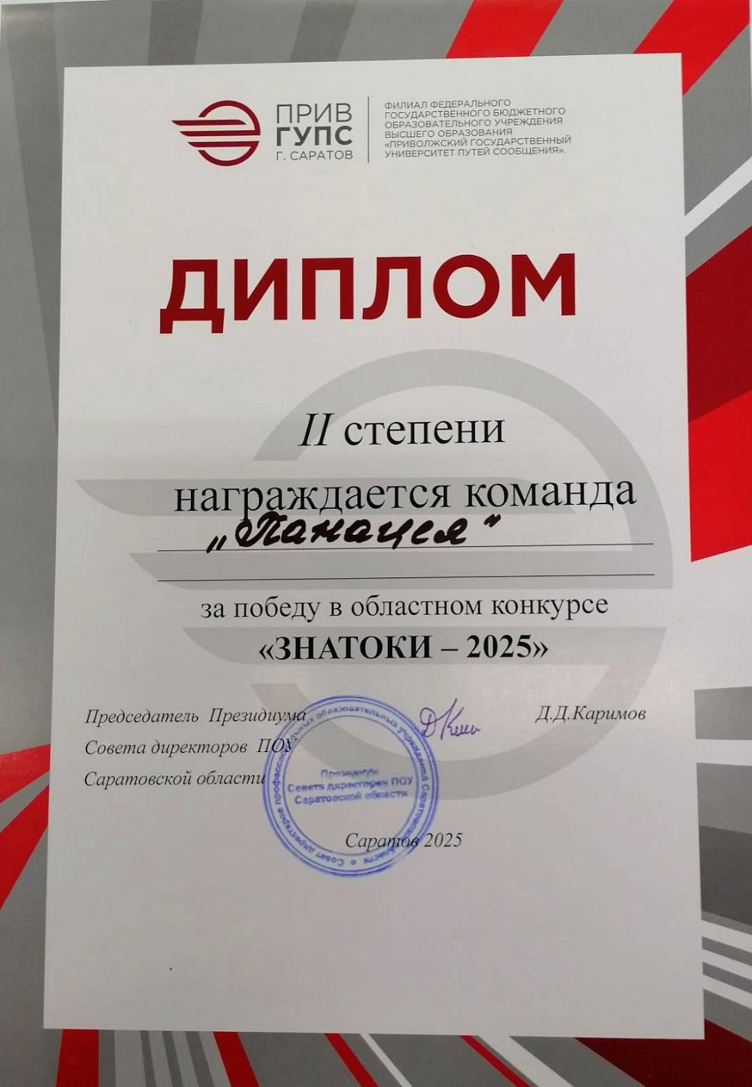 Команда «Панацея» Медицинского колледжа СГМУ в составе Щегравиной Яны, Неповинных Надежды, Селимова Магамеда, Русяйкина Тимофея и Сергеева Яромира заняла II место в областном конкурсе «Знатоки- 2025».