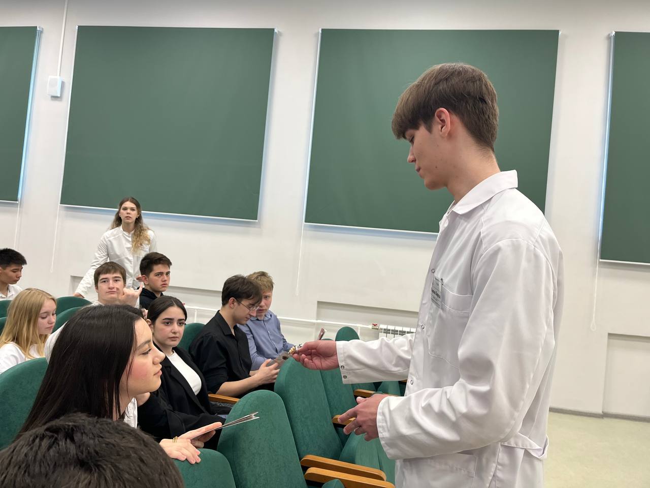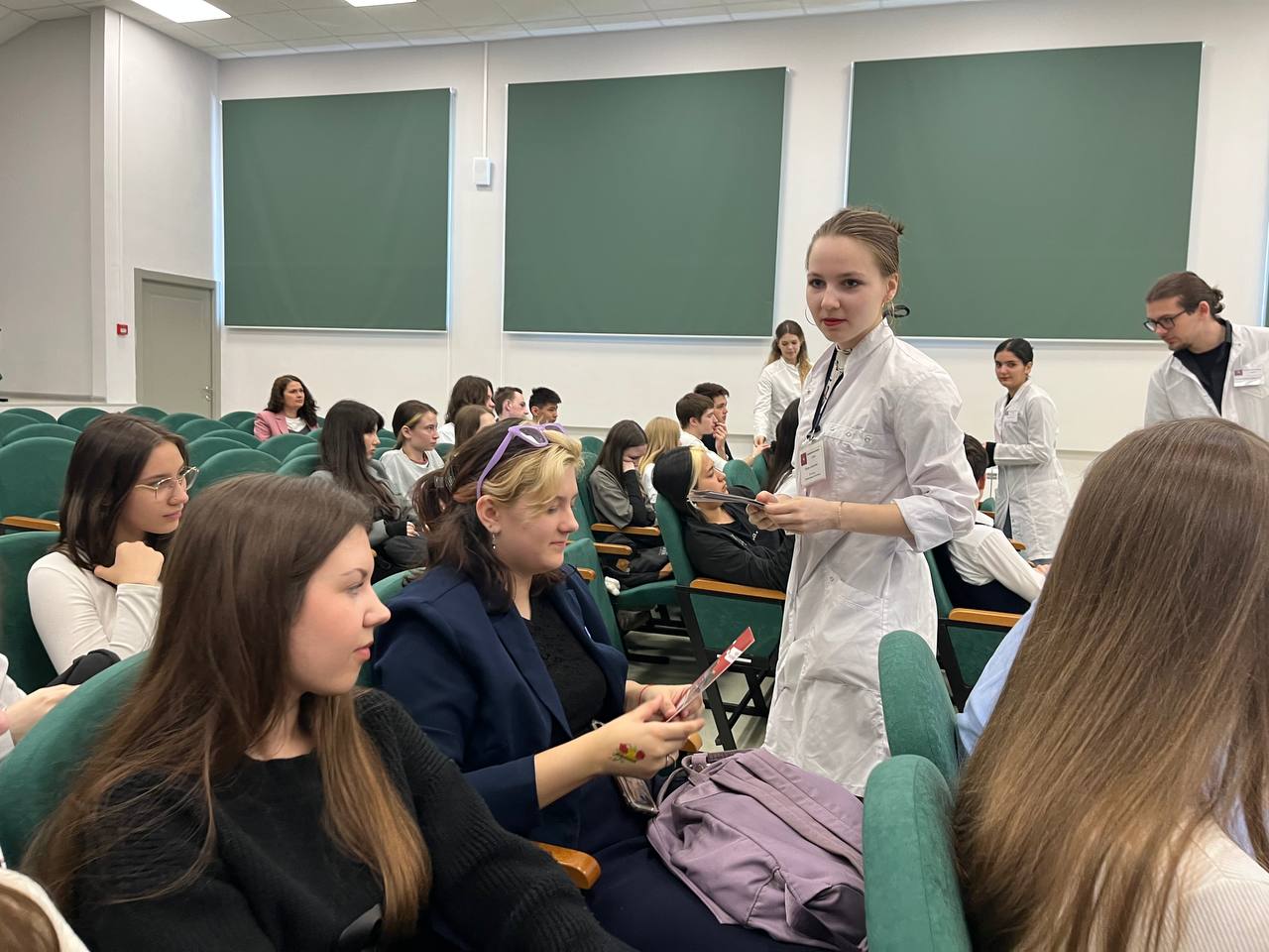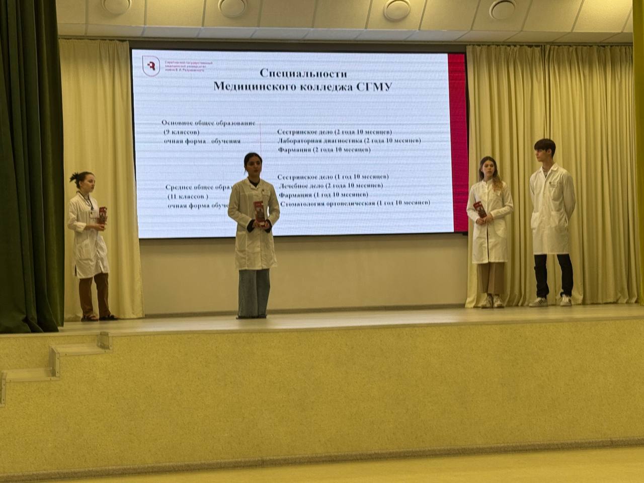 Под руководством ответственного секретаря приемной комиссии медицинского колледжа СГМУ Ольги Алиевой студенты специальностей «Стоматология ортопедическая», «Фармация», «Лабораторная диагностика» встретились со школьниками 8-11-х классов МОУ «СОШ № 73 им. К.Д. Шукшина».