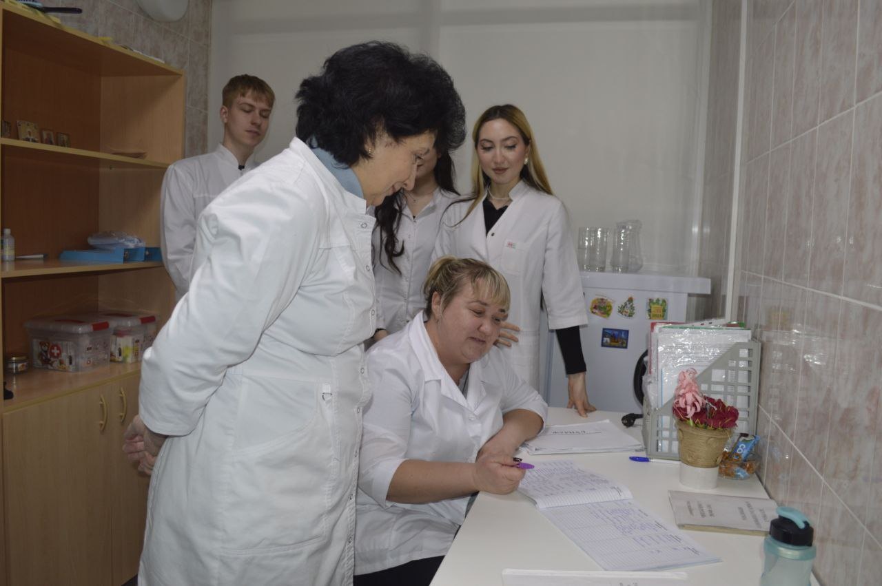 Студенты специальности «Сестринское дело» в кабинете доврачебной помощи