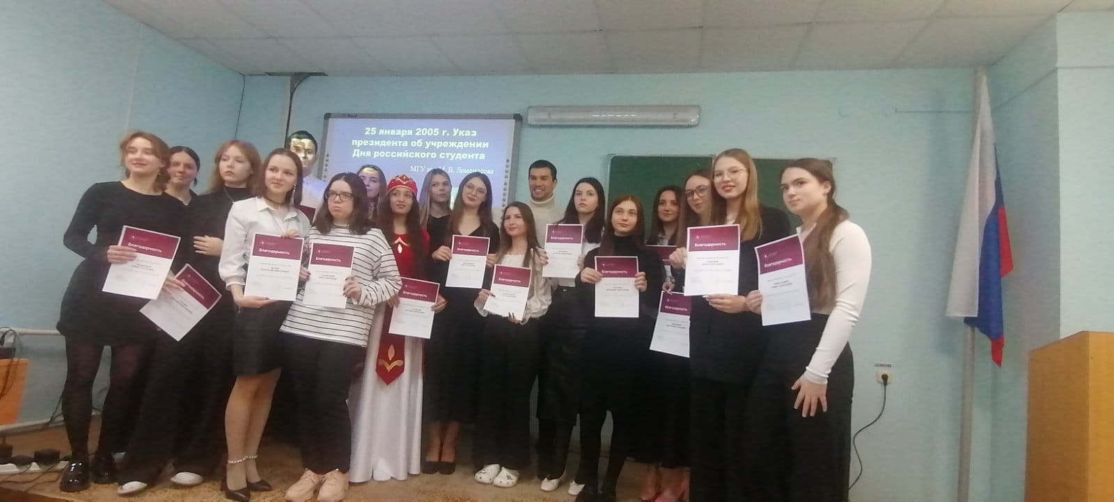 Программа праздника включала в себя чествование первокурсников, которые по результатам осеннего семестра принимали активное участие в интеллектуальных играх, спортивных соревнованиях, творческих мероприятиях, волонтерской деятельности, общественной жизни колледжа. Вручил благодарности студентам почетный гость праздника Артем Николаевич Чеботарев – боксер-профессионал, заслуженный мастер спорта России, бронзовый призер чемпионата мира 2013 года, чемпион Европы 2010 года, четырехкратный чемпион России среди любителей, депутат Саратовской областной думы.