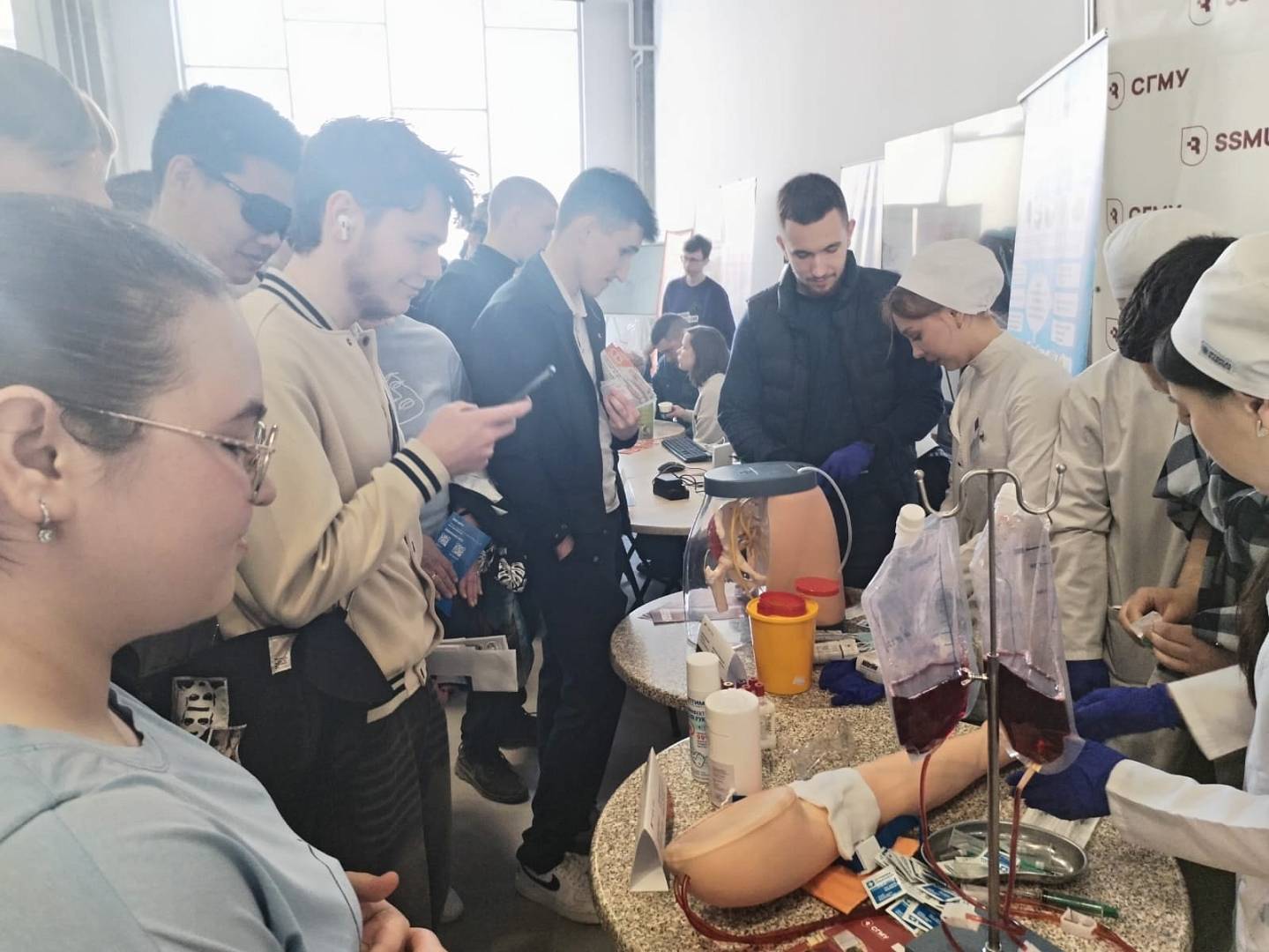 Участники ярмарки получили уникальную возможность не только наблюдать за процессом, но и активно участвовать в практической части, что вызвало у них большой интерес и желание попробовать себя в роли медицинских работников.