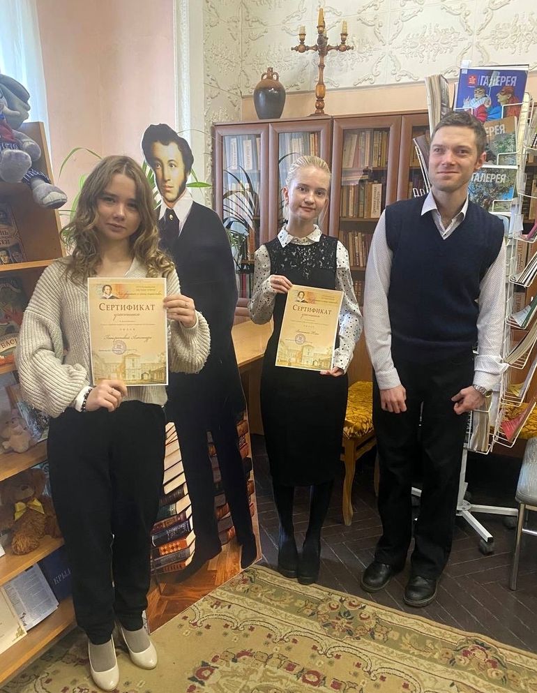 Студентки Медицинского колледжа СГМУ Васюнина Юлия и Панкратова Александра под руководством преподавателя литературы, русского языка и культуры деловой речи Александрова Сергея Сергеевича приняли участие во втором (очном) этапе XVII Пушкинских чтений, прошедшем в Областной библиотеке для детей и юношества имени А.С. Пушкина г. Саратова. Мероприятие было приурочено к 225-ой годовщине со дня рождения поэта, а также к Году семьи в России. Юлия и Александра представили свой доклад на тему «Семья и семейные ценности в жизни и творчестве А.С.Пушкина» в номинации «Исследовательская работа». Выступление наших студенток было встречено с большим интересом и удостоилось положительных комментариев.