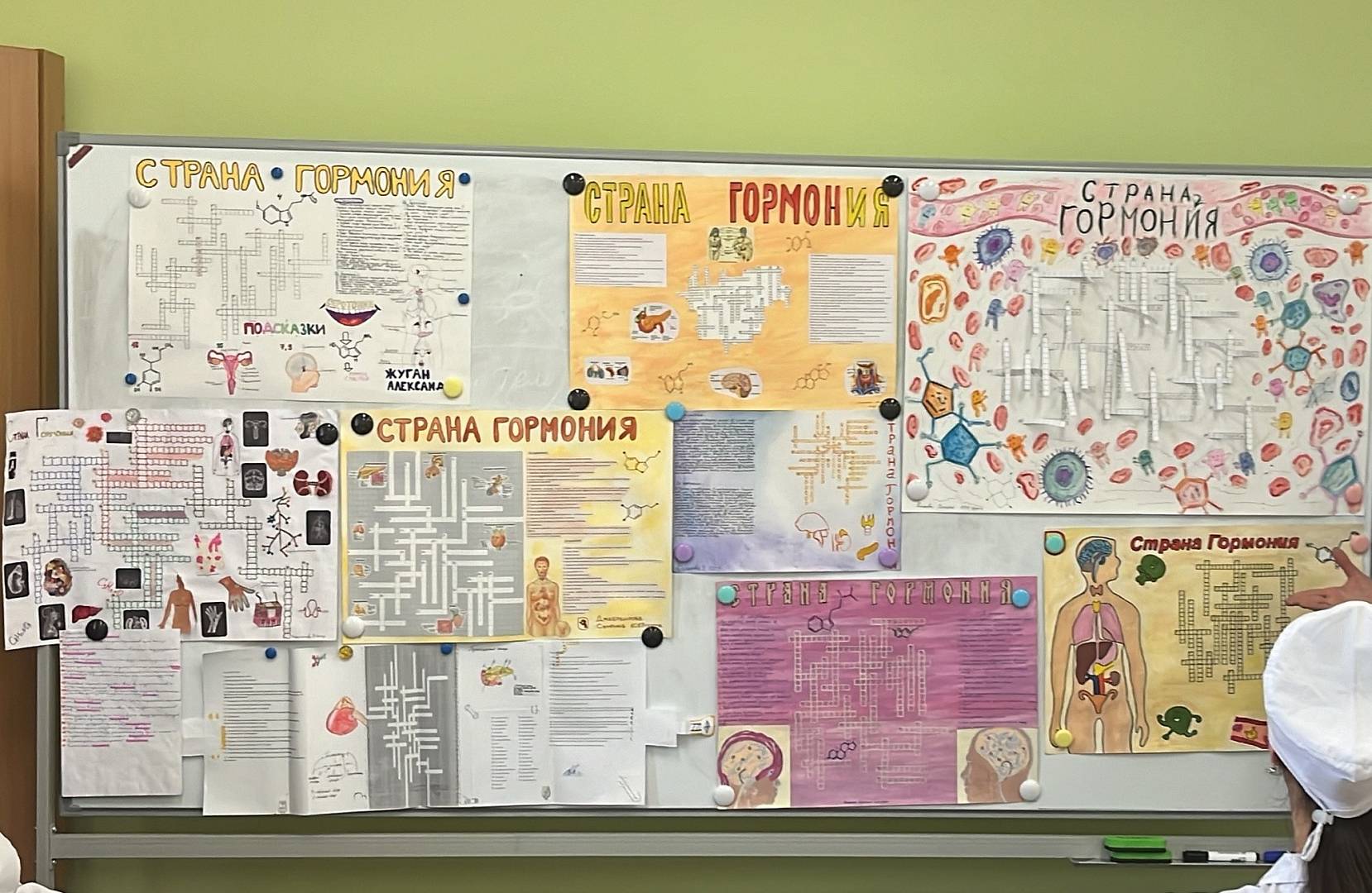 За неделю до заседания кружка был объявлен конкурс на лучший кроссворд на тему «Страна Гормония» (в данном случае это не опечатка!), вызвавший большой интерес среди студентов 1 курса специальности «Лечебное дело». На конкурс было представлено более 20 работ, многие из них были нарисованы вручную, подробно проиллюстрированы и ярко оформлены. Ребята подошли к процессу создания кроссвордов грамотно с точки зрения изучаемой дисциплины и очень творчески, поэтому выбор победителей, который прошел в конце заседания, стал нелегким делом.