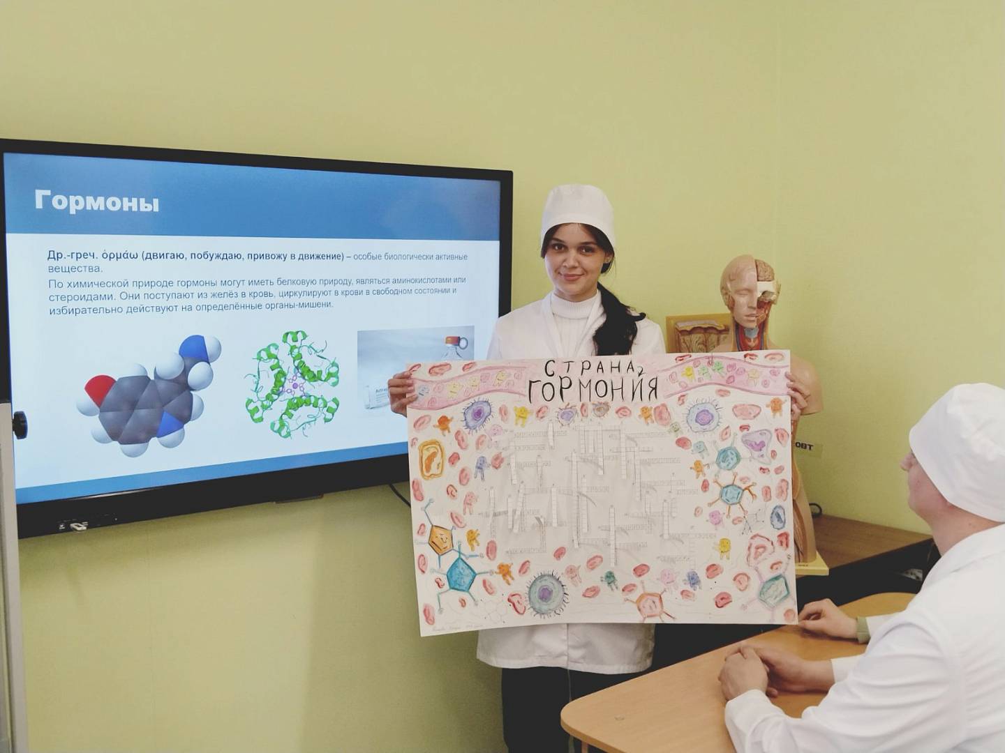 Далее студенты представили интересные и подробные сообщения и презентации, отражающие важные темы в эндокринологии: роль гормонов поджелудочной железы и развития сахарного диабета, патологии гипофиза, щитовидной и паращитовидной желез.